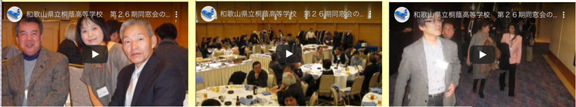 | 過去の同窓会 ご出席の皆様 ありがとうございました。 キタ━━━━━━(゚∀゚)━━━━━━!!!!! フォークダンスとビンゴゲーム。 幹事の修子さんが撮ったデジカメデータを動画にしました。 幹事の山本君の撮影データその1 幹事 山本君の撮影データその2 世界のyoutubeにデビューです。 YouTube【桐蔭 26】で検索・・・トップページで7番目 8番目 11番目にでます。2010 1/5 No1はコメントも書けるようにしました。書き込み・アクセスお願いします。 コメントはyoutubeサイトで http://www.youtube.com/watch?v=kwJeBvLp4qA 第5回同窓会 2010 1/3開催しました。 ■日時 2010年1月3日(日曜日) 15:00− ■場所 和歌山市 アバローム紀の国 〒640-8262 和歌山県和歌山市湊通丁北2-1-2 TEL : 073-436-1200/ FAX : 073-436-8866 http://www.avalorm.com/ ■■■■■■■■■■■■■■■■■■■■■■■■■■■■■■■■■ 出席状況など 5回同窓会詳細ページ ■11/9現在 B C D組 不調。 住所不明の同窓生や消息なども掲載しています。 参加と宛先不明の同窓生も増えています。わかる方いれば ご一報ください。 ■■■■■■■■■■■■■■■■■■■■■■■■■■■■■■■■■ 宿泊予定の方 連絡下さい。幹事の方で手配させていただきます。 26期同窓会専用mailアドレス作りました。 同窓会に登録するアドレスはこちらへ toin26@gmail.com ■今やtwitterくらい していないようだと ネットしてるとは言えない!! と IT企業に勤める長女より 言われたので なんとなく作りました。 http://twitter.com/amiyamoto0516 お互いフォローして 日頃の話題 つぶやきませんか? 無料登録です。オバマもつぶやいています。 掲示板替わりにもなるかな・・・・・・・宮本 |